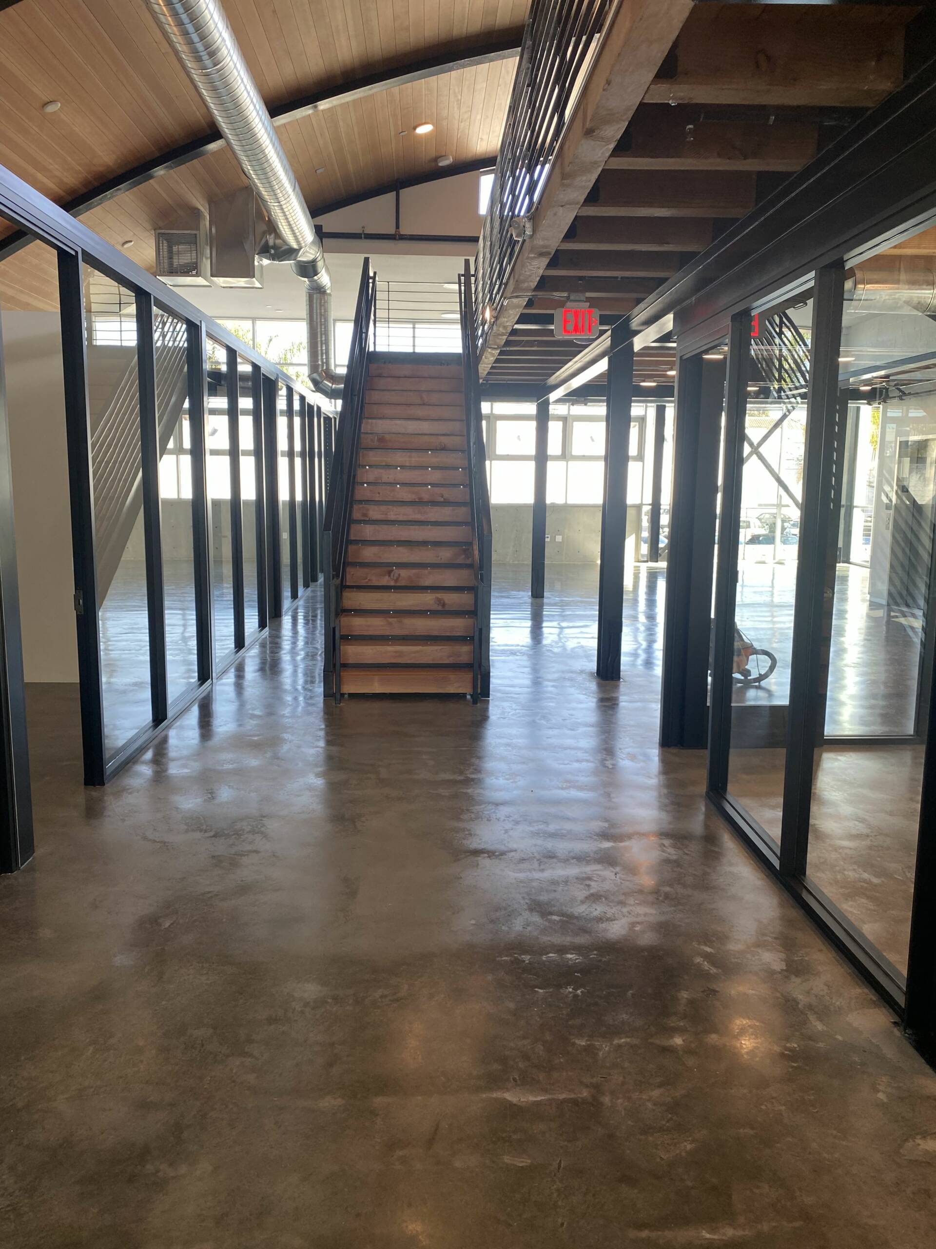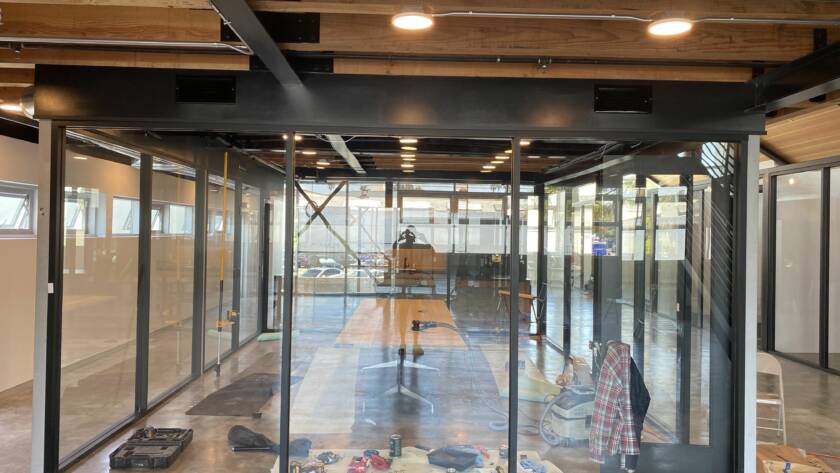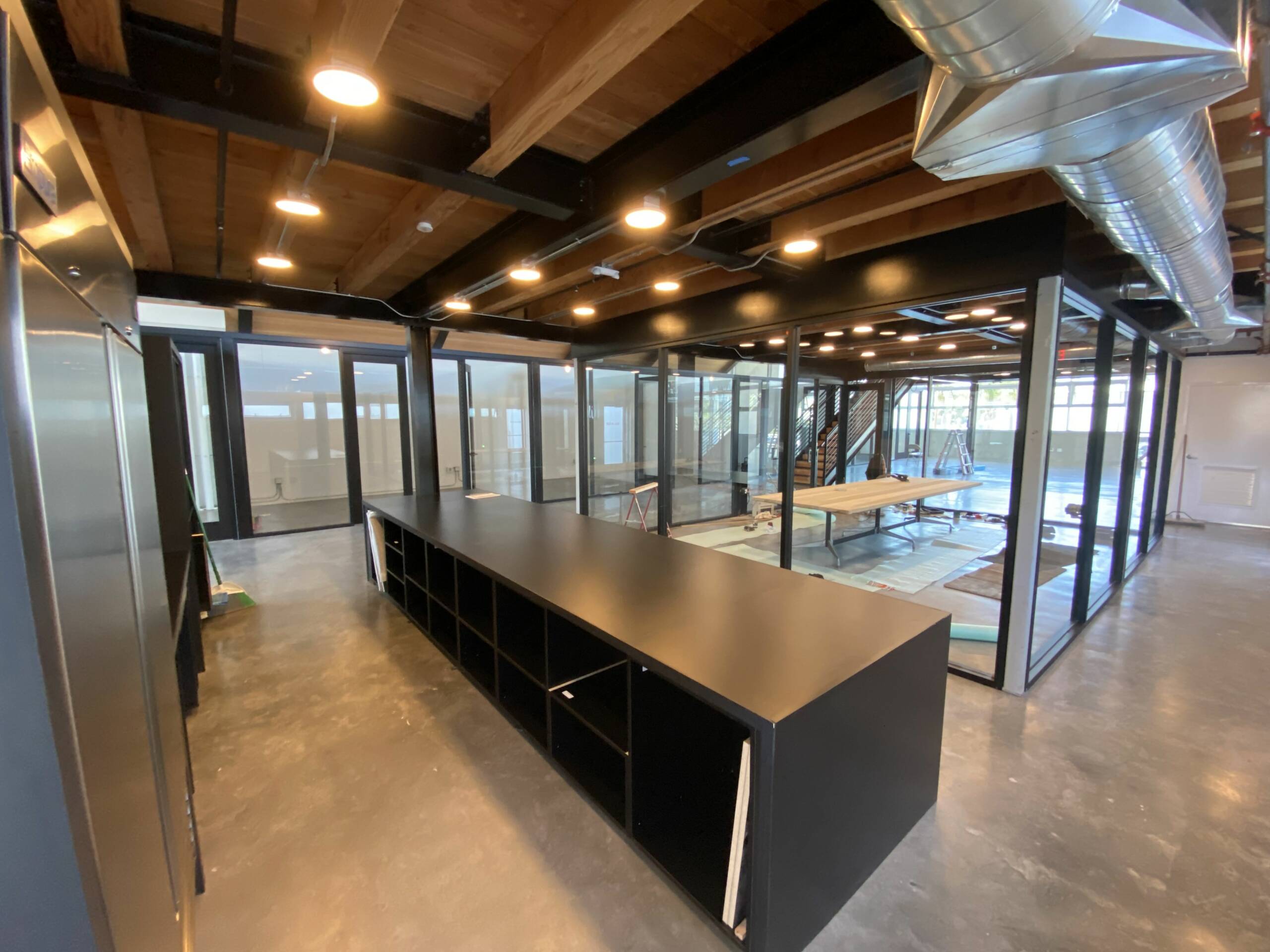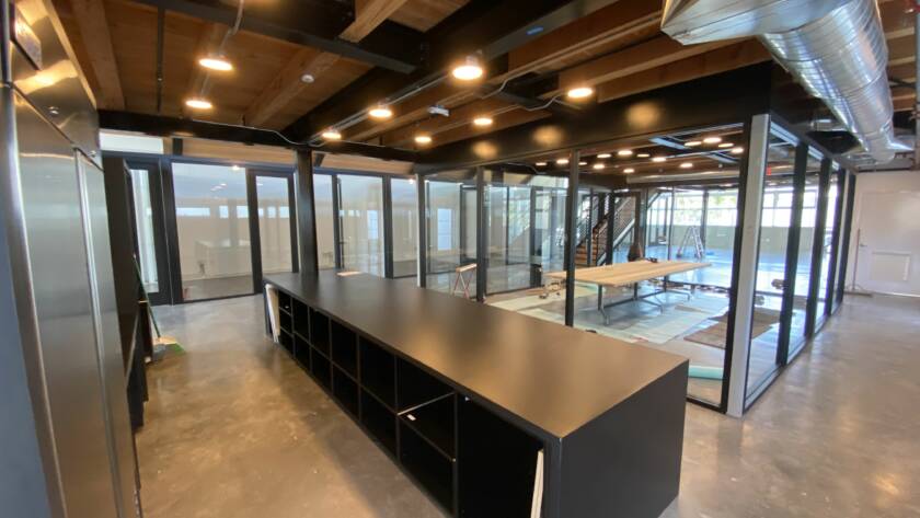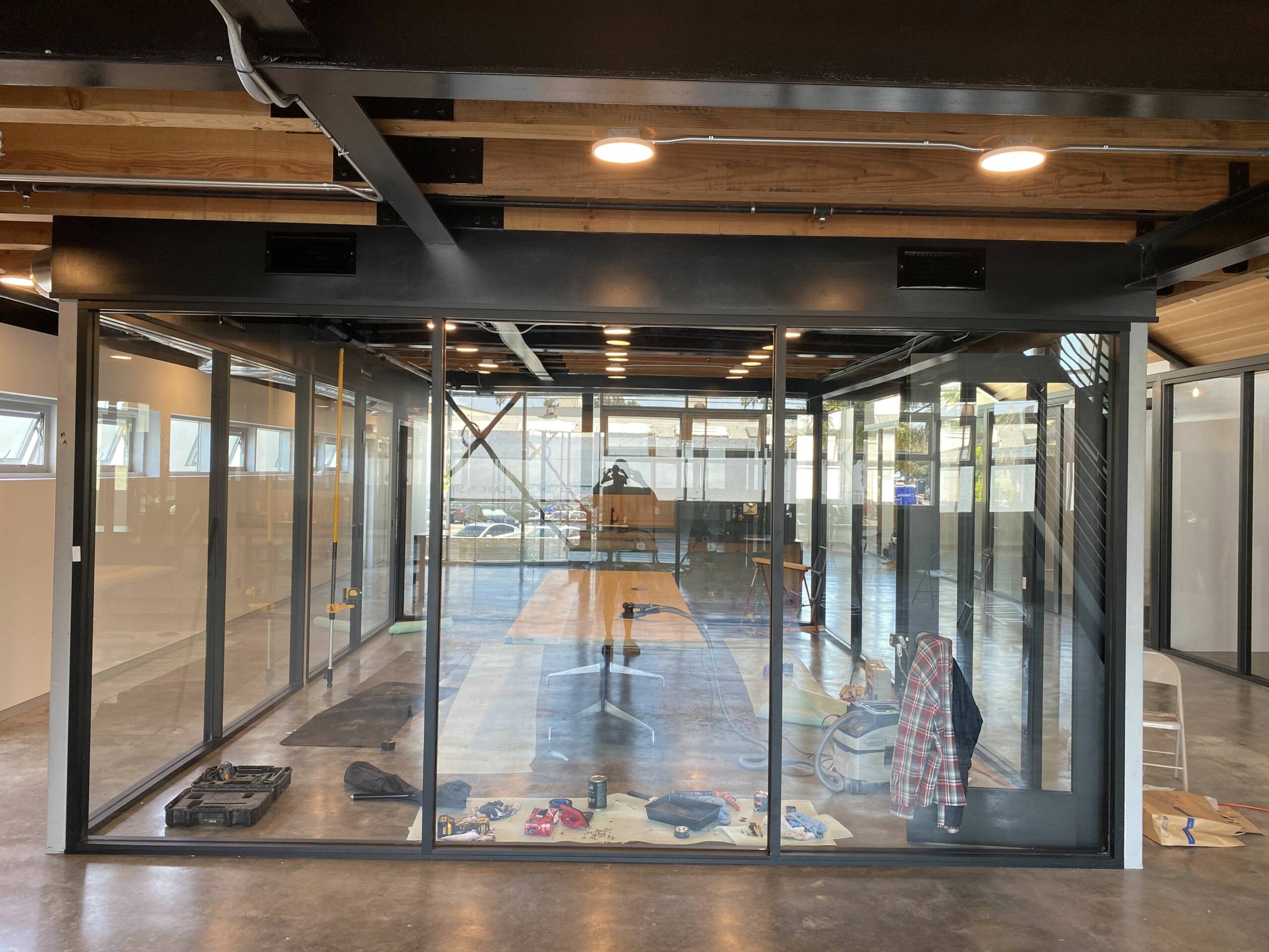 TI completed in 4 months as the General Contractor, designed as a conceptual modern hangar turned functional office. The build was all glass offices, glass conference room and building a kitchen and bathroom. LDI worked with an Malibu Designer to help complete design and construction. The building saw many changes, including new mechanical system, lighting system, IT configuration and a seamless design glass structure.